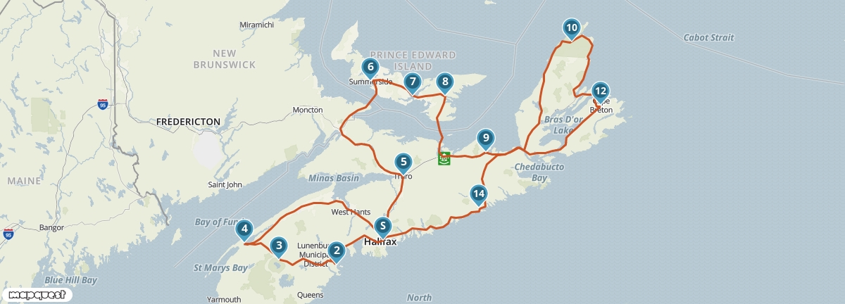 Dit traject bevat een ferry van Wood Islands naar Caribou.