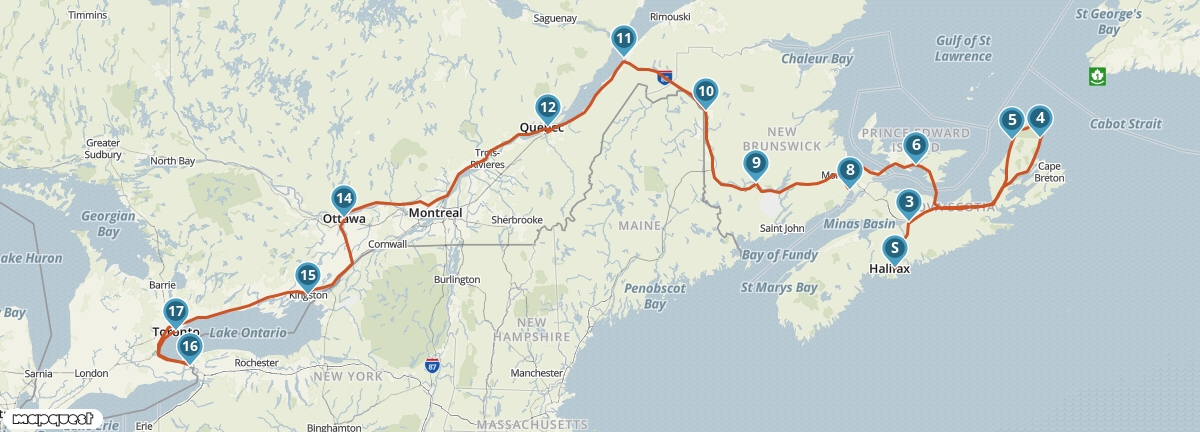 Maak een mooie one-way van Halifax naar Toronto! Onderweg beleef je de Canadese Atlantics in vijf verschillende provincies. Je combineert in deze autoreis de overweldigende natuur van de provincies Nova Scotia en New Brunswick met de grote steden van Oost-Canada, waaronder Halifax en Québec. Het rustige schiereiland van Gaspé vormt een schril contrast met het bruisende Toronto. Bezoek vissersdorpjes op het pittoreske Prince Edward Island en bewonder immense vogelkolonies op het eiland Bonaventure. Het hoogtepunt van Nova Scotia, het Cape Breton National Park, ontbreekt uiteraard niet in deze bijzondere route.