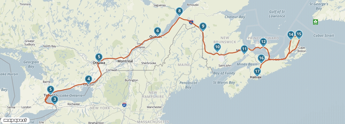 Maak een mooie one-way van Toronto naar Halifax! Onderweg beleef je de Canadese Atlantics in vijf verschillende provincies. Je combineert in deze autoreis de overweldigende natuur van de provincies Nova Scotia en New Brunswick met de grote steden van Oost-Canada, waaronder Québec en Halifax. Het rustige schiereiland van Gaspé vormt een schril contrast met het bruisende Toronto. Bezoek vissersdorpjes op het pittoreske Prince Edward Island en bewonder immense vogelkolonies op het eiland Bonaventure. Het hoogtepunt van Nova Scotia, het Cape Breton National Park, ontbreekt uiteraard niet in deze bijzondere route.
