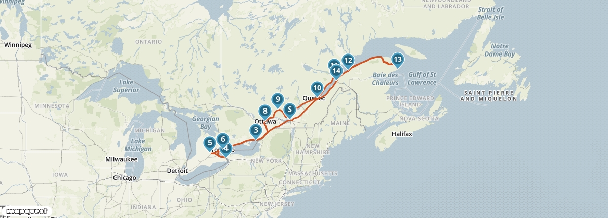 Van Montréal rijd je naar het kosmopolitische Toronto. Vlakbij aanschouw je de grootse Niagarawatervallen waarna je Ottawa, de hoofdstad van het land, bezoekt. Tijdens deze reis maak je bovendien kennis met de geschiedenis van het Franse deel van Canada. Van het historische, ommuurde Québec City voert de reis naar het schiereiland van Gaspé, waar Jacques Cartier in 1534 Nieuw-Frankrijk stichtte. Ten slotte volg je de St. Lawrence River naar Montréal, waar de reis eindigt.