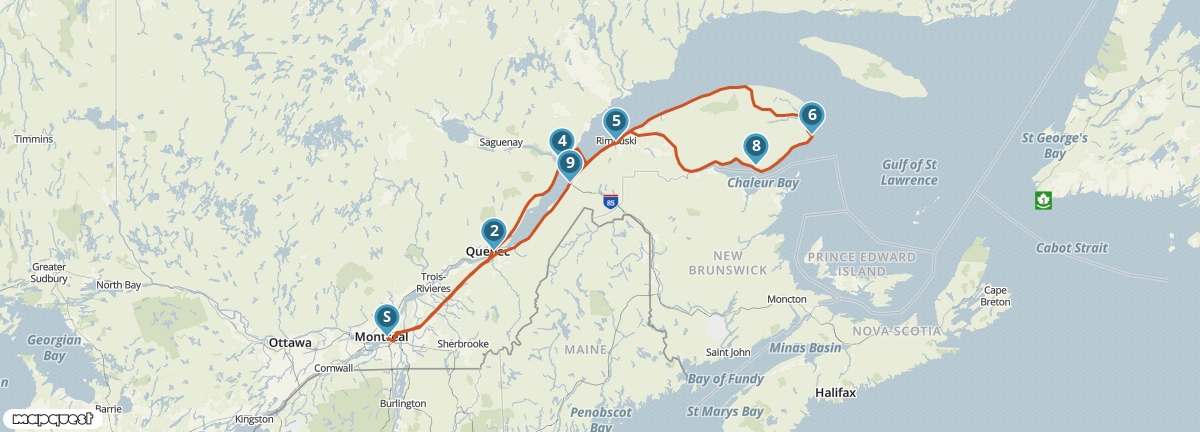 Dit traject bevat een ferry van Les Escoumins naar Trois-Pistoles.