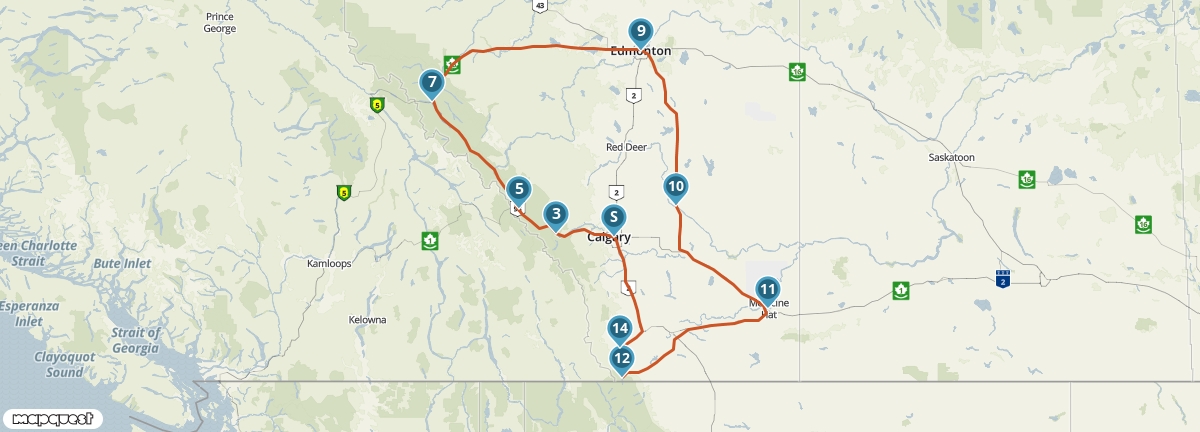 De overwegend korte reisdagen van deze autoreis zorgen ervoor dat er volop gelegenheid is de prachtige natuur van Alberta in West Canada te zien en ervaren, maar ook een glimp op te vangen van het cowboyleven van weleer. Je reis start in Calgary, een stad in ons land vooral bekend door de Olympische Spelen, maar die veel meer te bieden heeft. Via rijdt naar Canmore, een plaats nabij 6 provinciale parken, en Lake Louise rijd je over de beroemde Icefields Parkway naar Jasper. De meest noordelijke plaats in de route is Edmonton van waaruit je in oostelijke richting naar Drumheller Badlands en Medicine Hat rijdt. Het volgende reisdoel is het wonderschone Waterton Lakes National Park waarna je over Highway 22 via de 'Cowboy Trail' weer uitkomt in Calgary.
