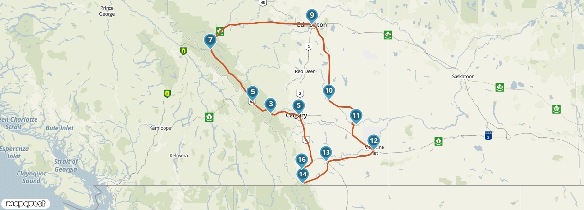 De overwegend korte reisdagen van deze autoreis zorgen ervoor dat er volop gelegenheid is de prachtige natuur van Alberta in West Canada te zien en ervaren, maar ook een glimp op te vangen van het cowboyleven van weleer. Je reis start in Calgary, een stad in ons land vooral bekend door de Olympische Spelen, maar die veel meer te bieden heeft. Via rijdt naar Canmore, een plaats nabij 6 provinciale parken, en Lake Louise rijd je over de beroemde Icefields Parkway naar Jasper. De meest noordelijke plaats in de route is Edmonton van waaruit je in oostelijke richting naar Drumheller Badlands en Medicine Hat rijdt. Het volgende reisdoel is het wonderschone Waterton Lakes National Park waarna je over Highway 22 via de 'Cowboy Trail' weer uitkomt in Calgary.