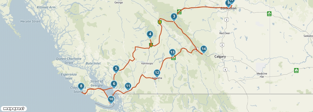 Dit traject bevat een ferry van Horseshoe Bay naar Nanaimo.