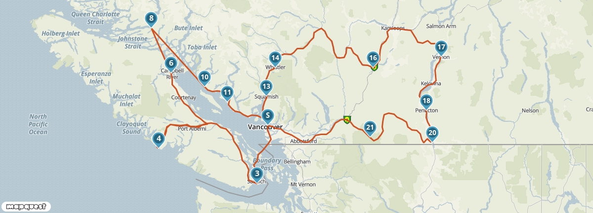 Dit traject bevat een ferry van Tsawwassen naar Swartz Bay.
