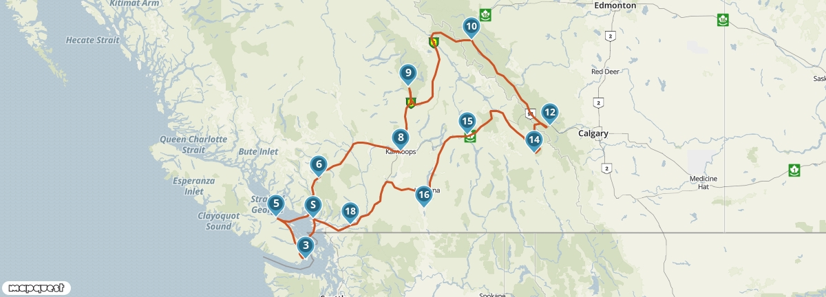 Dit traject bevat een ferry van Tsawwassen naar Swartz Bay.
