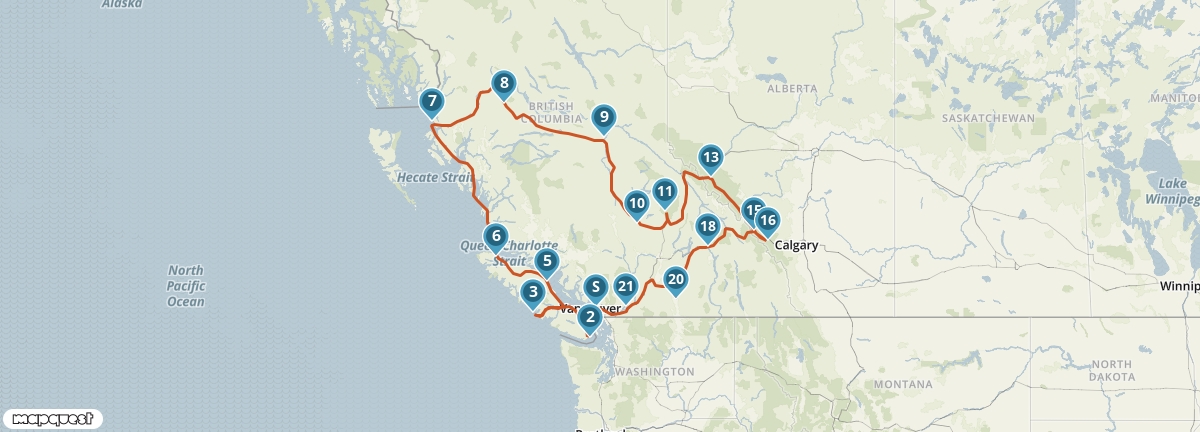 Deze klassieke rondreis door British Columbia en Alberta brengt je naar berglandschappen met gletsjers, ijsvelden, watervallen en meren. Via een overtocht over de Strait of Georgia reis je naar de charmante stad Victoria. Per boot vaar je daarna door de Inside Passage naar Prince Rupert. Landinwaarts ga je naar de wereldwijd bekende vakantieoorden Jasper en Banff, waarna je weer terugkeert in Vancouver.