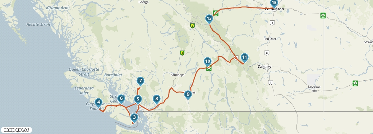 Dit traject bevat een ferry van Nanaimo naar Horseshoe Bay.
