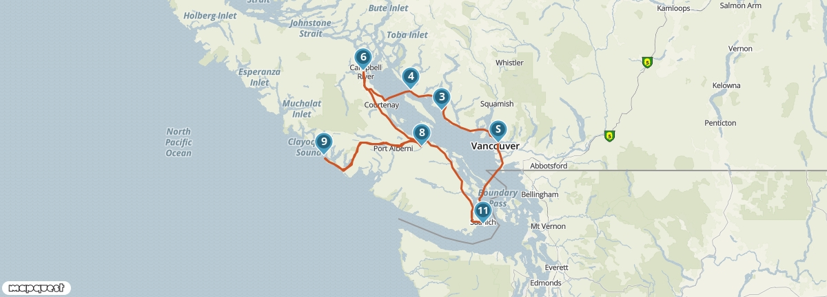 Dit traject bevat een ferry van Swartz Bay naar Tsawwassen.
