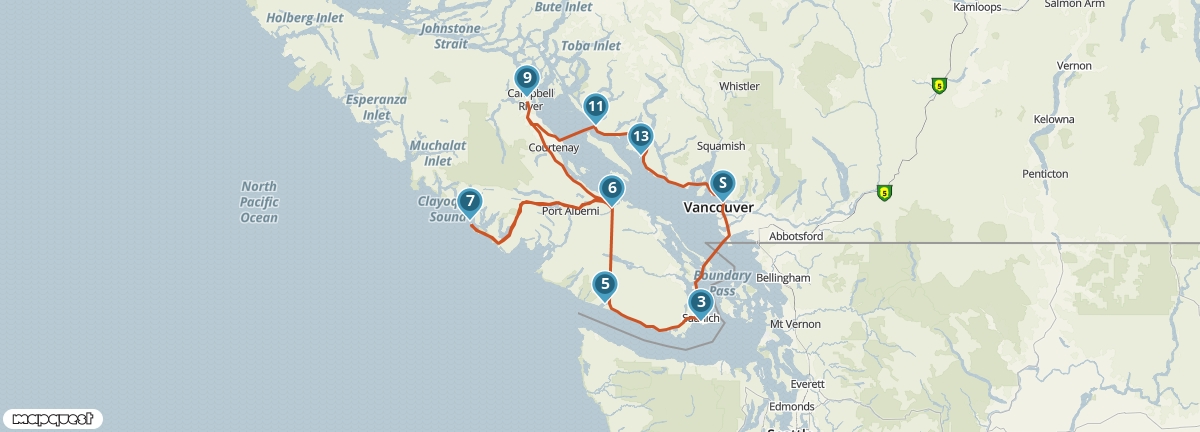 Dit traject bevat een ferry van Tsawwassen naar Swartz Bay.