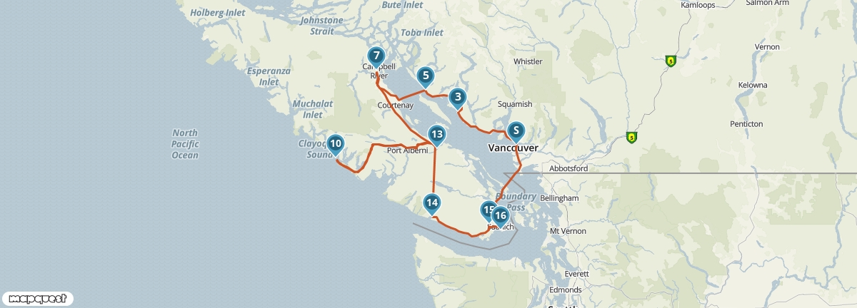 Dit traject bevat een ferry van Powell River naar Comox.