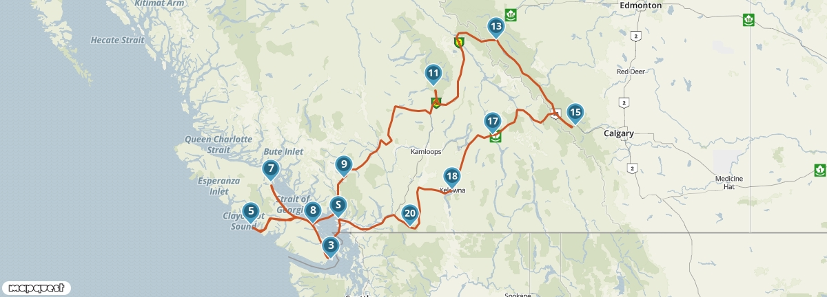 Dit traject bevat een ferry van Nanaimo naar Horseshoe Bay.