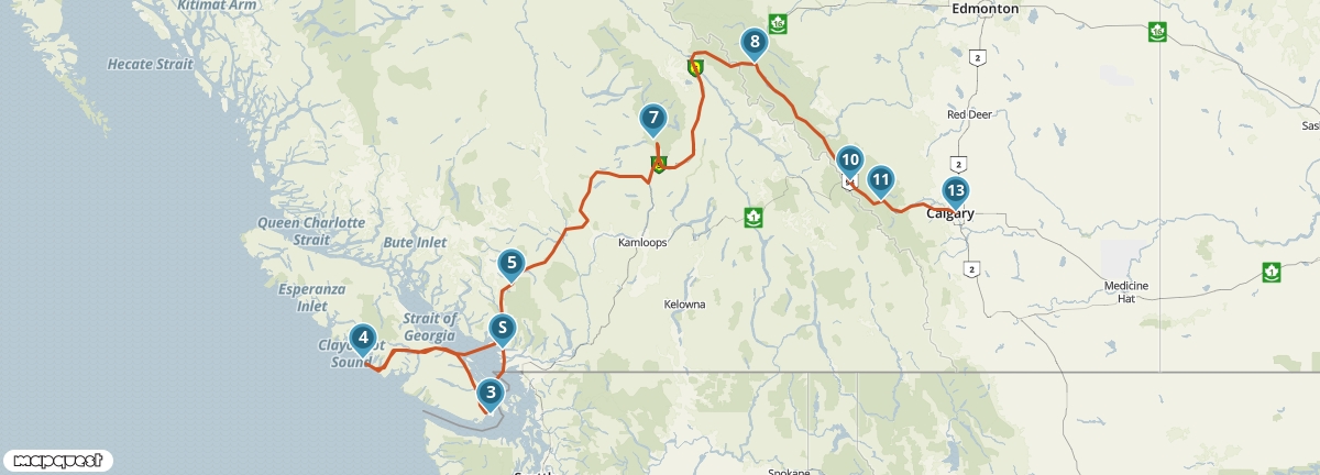 Op deze avontuurlijke trip reis je van Vancouver over de Strait of Georgia naar het Pacific Rim National Park op Vancouver Island. Daarna keer je terug naar het vasteland en via Whistler ga je naar Jasper, waarna je over de schilderachtige Icefields Parkway naar Lake Louise en Banff rijdt. Je sluit de reis af in Calgary.