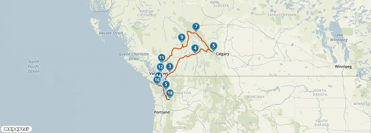 Dit traject bevat een ferry van Victoria naar Port Angeles. Als je per schip de VS binnenkomt, moet je een ESTA hebben.