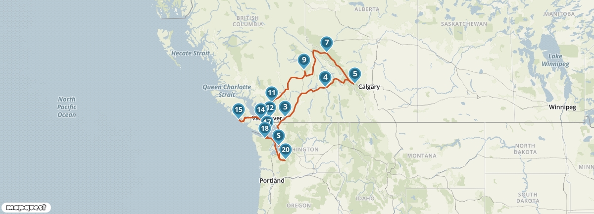 Dit traject bevat een ferry van Victoria naar Port Angeles. Als je per schip de VS binnenkomt, moet je een ESTA hebben.