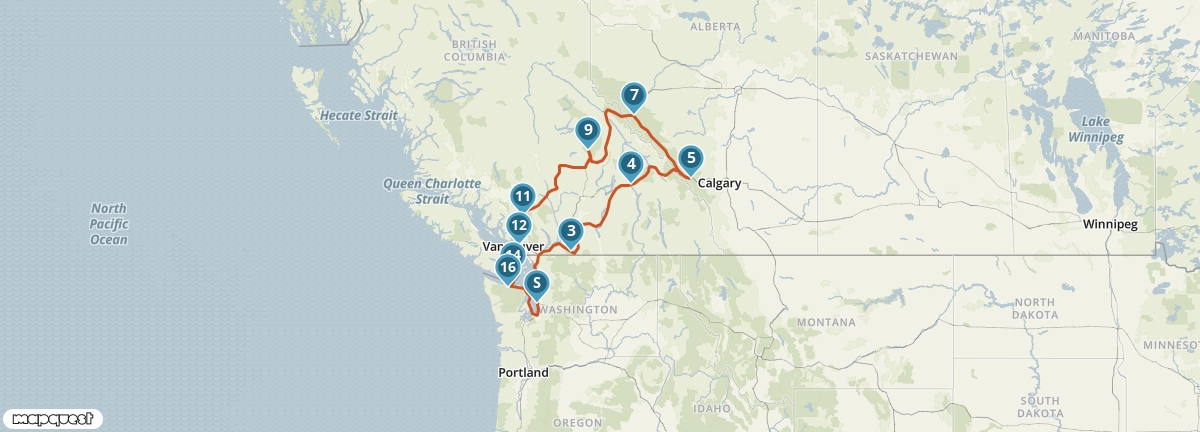 Dit traject bevat een ferry van Victoria naar Port Angeles. Als je per schip de VS binnenkomt, moet je een ESTA hebben.