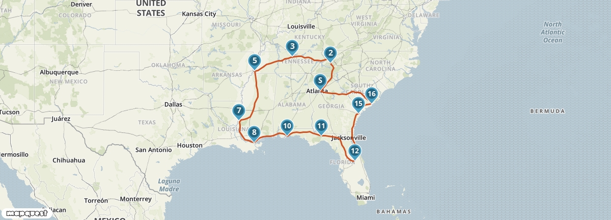 Je maakt tijdens deze autoreis kennis met de gastvrijheid van het Diepe Zuiden van de Verenigde Staten én de staat Florida. Je ziet de themaparken van Florida en voelt de jazz-vibes van New Orleans. Je bezoekt Nashville, de bakermat van de country- en westernmuziek, en Memphis, de stad van Elvis Presley en Martin Luther King. In Savannah en Charleston maak je kennis met typische bezienswaardigheden voor de Deep South: antebellum-architectuur, gastvrijheid en oude plantages.