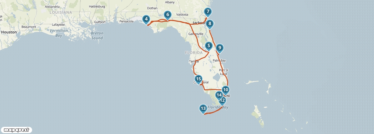 Maak kennis met de verborgen schatten van Florida. Onderweg van Orlando naar Panama City Beach kun je bij verschillende natuurgebieden stoppen. Spot allerlei bijzondere dieren op Amelia Island ontdek het historische centrum van St. Augustine en bezoek de Blowing Rocks in Stuart. Na een bezoek aan Miami en een eventueel snorkelavontuur op Key West rijd je langs de Everglades terug naar Orlando.