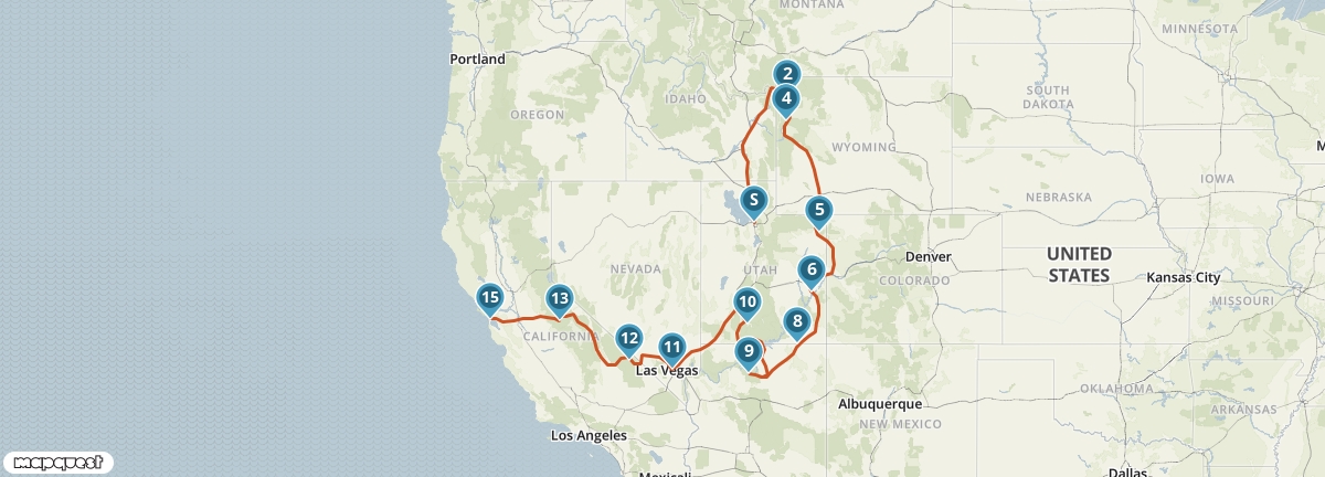 De afstanden in Amerika zijn groot, maar door een slimme one-way te maken van alt Lake City naar San Francisco, kun je de meest uiteenlopende landschappen ontdekken. Je bezoekt onder andere de westkust, de dichte bossen en hoge watervallen van Yosemite National Park, de woestijnachtige landschappen van het Zuidwesten en het alpinegebied rond Yellowstone.