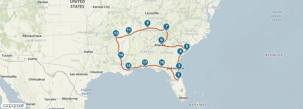 Tijdens deze camperreis maak je kennis met de gastvrijheid van het Diepe Zuiden van de Verenigde Staten. Je ziet de themaparken van Florida en de oude wereld van New Orleans. Je bezoekt Nashville, de bakermat van de country- en westernmuziek, en Memphis, de stad van Elvis Presley en Martin Luther King. In Savannah en Charleston maak je kennis met zuidelijke tradities en typische Deep South-bezienswaardigheden zoals antebellumhuizen en oude plantages.