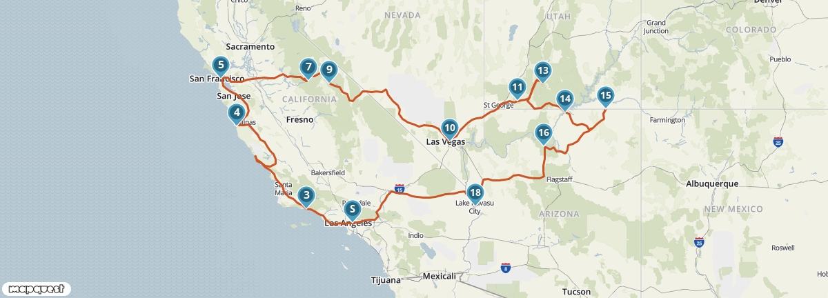 Vanuit Los Angeles maak je een rondreis langs de mooiste plaatsen van het zuidwesten van de Verenigde Staten. Je ziet de watervallen van Yosemite National Park, de meest iconische natuurparken van Arizona en Utah en de steden aan de Pacific Coast. Je verblijft op een aantal plaatsen twee nachten, dus je hebt voldoende tijd om alles goed te bekijken en te beleven.