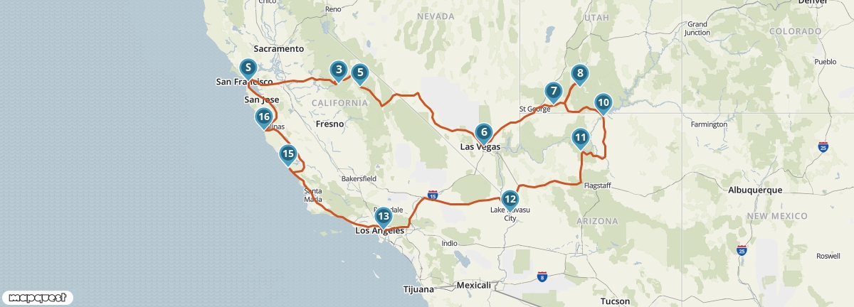 Tijdens deze reis krijg je een goede indruk van de hoogtepunten van het zuidwesten van de Verenigde Staten. Je bezoekt vier staten en ziet onderweg wereldsteden als San Francisco, Las Vegas en Los Angeles. Bovendien maak je kennis met verschillende National Parks, waaronder Yosemite en de Grand Canyon. Een van de mooiste etappes van de reis voert je over de beroemde Pacific Coast Highway.