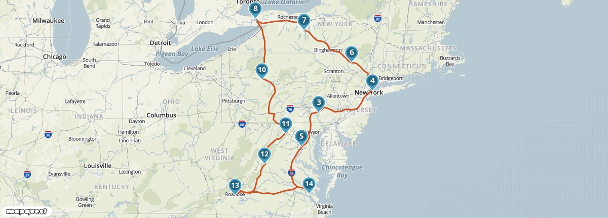 De naam van deze route zegt het al: je bezoekt in deze motorreis de hoogtepunten van Oost-Amerika. Daartoe behoren onder andere Washington DC, New York City en de Niagara Falls. American History komt aan bod in Lancaster (het gebied van de Amish), Woodstock en Williamsburg, gelegen in de Golden Triangle en bijgenaamd The Worlds Largest Living History Museum. Ter afwisseling bezoek je de prachtige Finger Lakes en Shenandoah National Park.